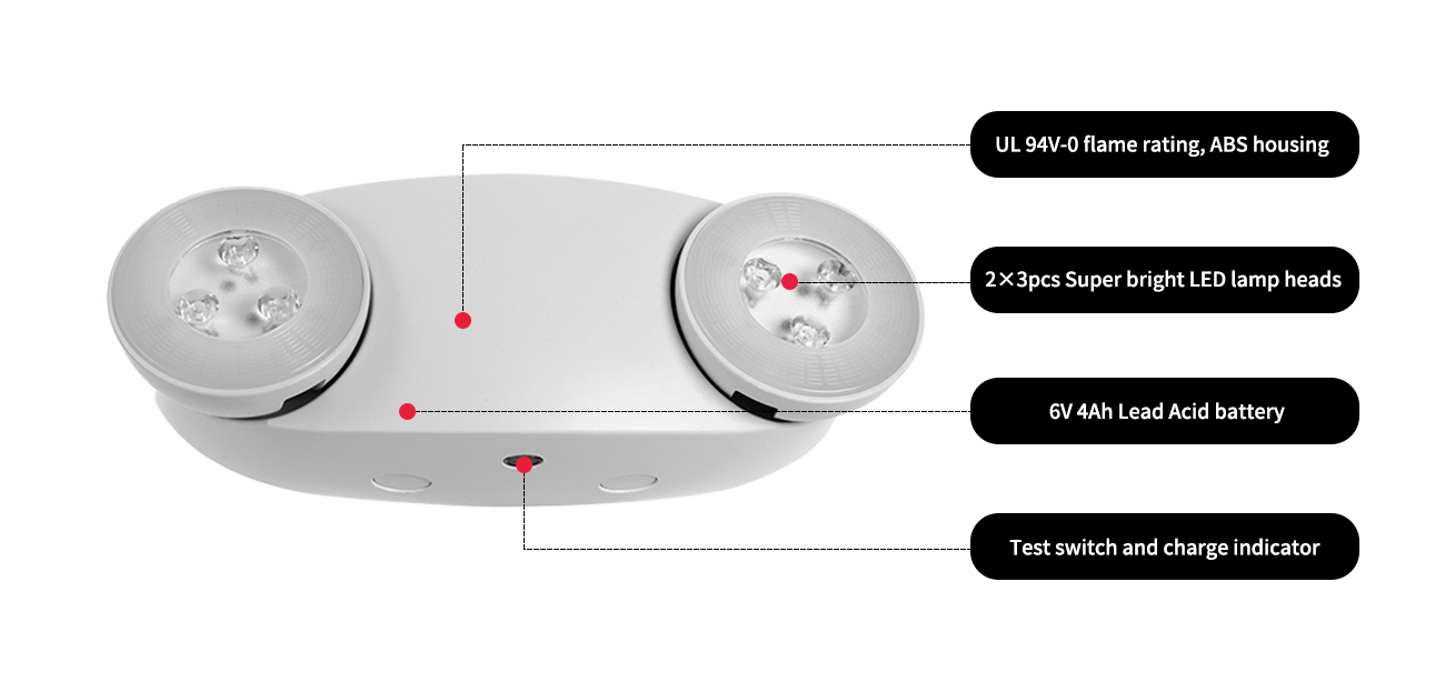 Heim / Produkt / Notlicht / Doppelkopf -Notlicht / JLEU6 UL/CUL 600LM Hochzeit mit Doppelkopf -Notlicht