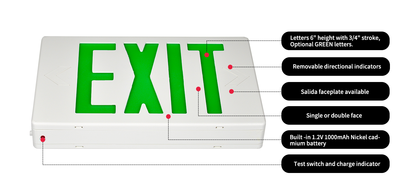 *Beleuchtung - Die Beleuchtung der LED -Ausgangsschilderreihe wird durch Verwendung langlebiger, effizienter ultra -hellgrüner LEDs erreicht. Der farbanpassende Diffusor eliminiert Hots-Flecken und -streifen und sorgt für eine optimale Lichtleistung.