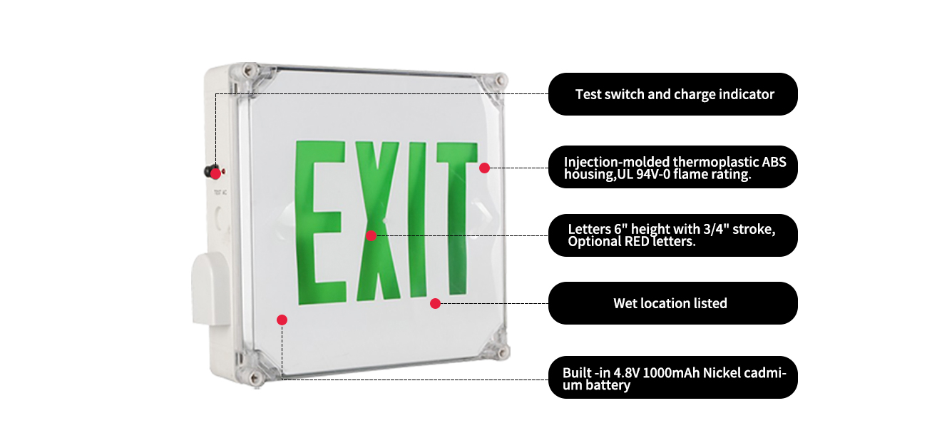 Außen -wasserdichte LED -Ausgangsschild (nasse Ort, grüne Buchstaben)