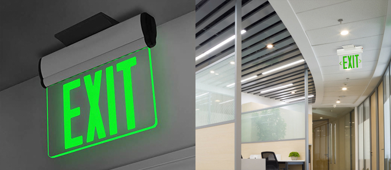 *Illumination - Diese Edge -Lit -Ausstiegsschilderreihe bietet eine LED -LED -Beleuchtung. Das Gerät ist mit einer grünen Hochleistungsplatine gebaut.  Der Energieverbrauch wird bei weniger als 4 Watt für die nur Modelleinheiten der Wechselstromeinheiten bewertet. Der Energieverbrauch der Batterie -Sicherungseinheiten beträgt weniger als 1 Watt.