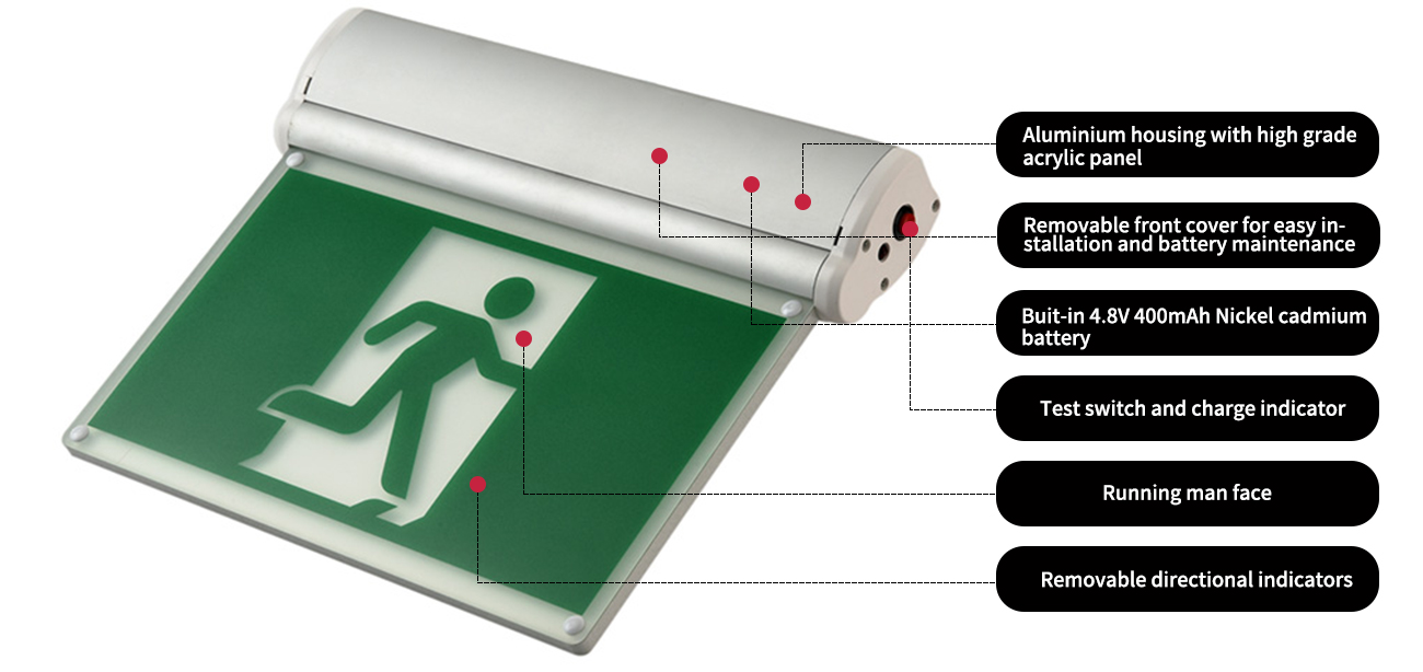 Heim / Produkt / Ausgangszeichen / Running Man Exit Sign / Jelrm Aluminium 6 Zoll Running Man LED Notfallausgangszeichen